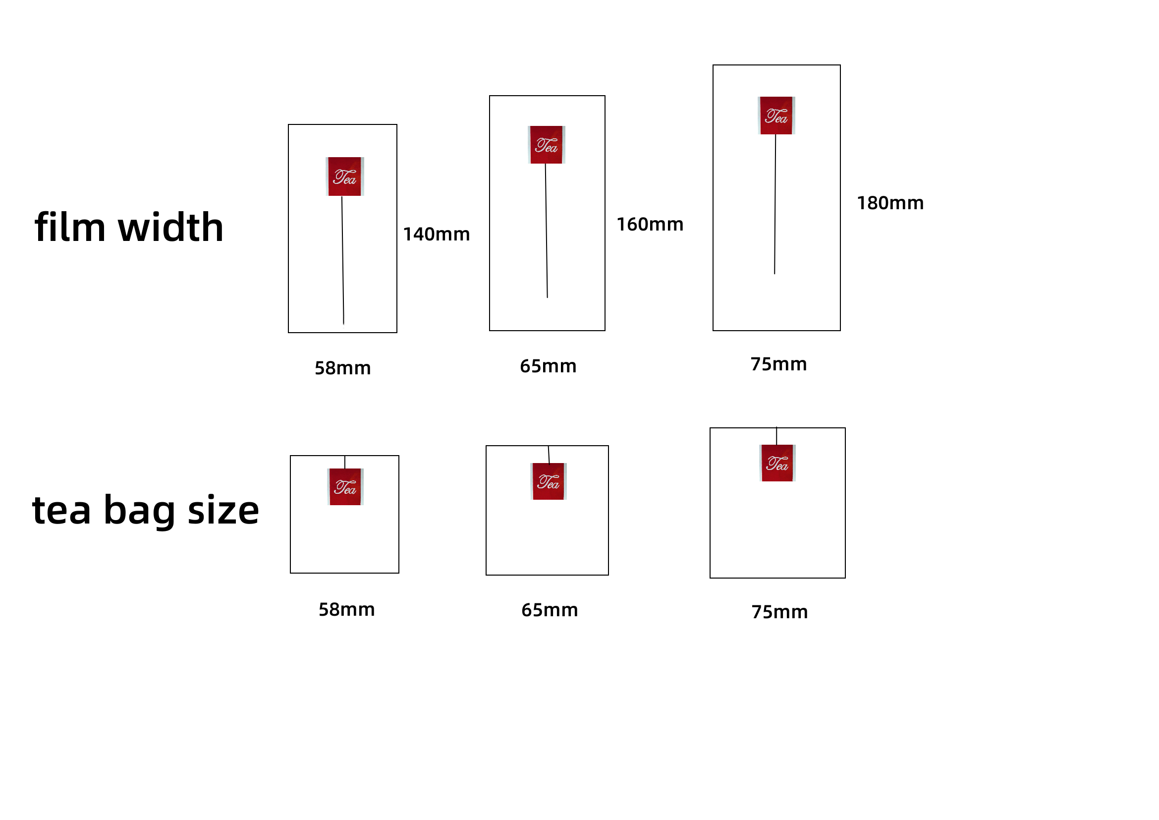 Jika anda bimbang tentang kebolehsuaian mesin, kami akan menyediakan perkhidmatan sampel percuma, dan barang akan dibayar oleh pembeli. Saiz umum beg teh kosong ialah 5.8 * 7cm /6.5 * 8cm /7 * 9cm, dan saiz umum bahan bergelung adalah 140/160 /180mm. Untuk saiz lain, sila rujuk kakitangan jualan kami.